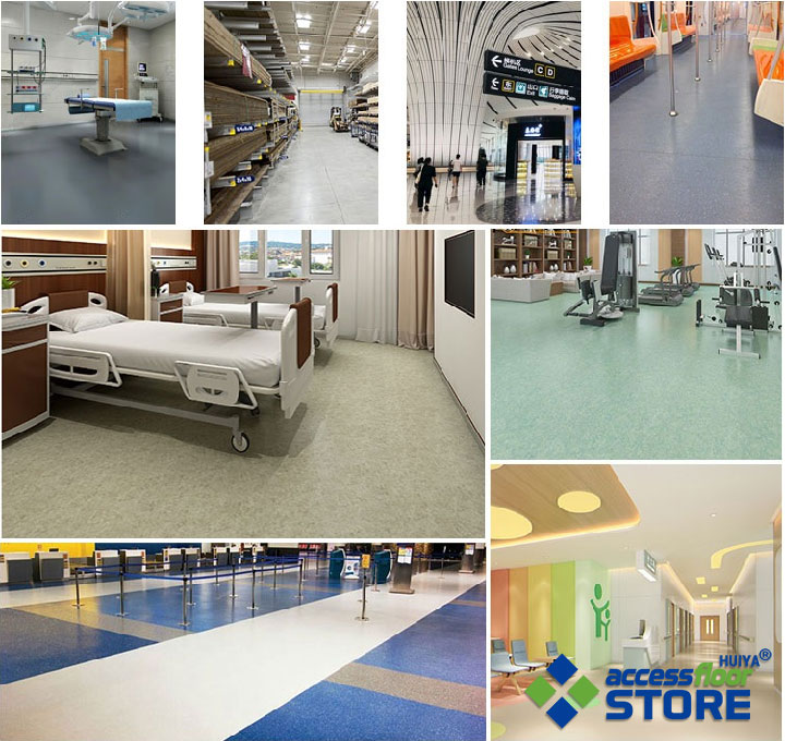 This type of homogeneous vinyl flooring is suitable for industrial and commercial purposes such as shopping malls, schools, public buildings, hospitals, playgrounds, buses and hospitals etc.
