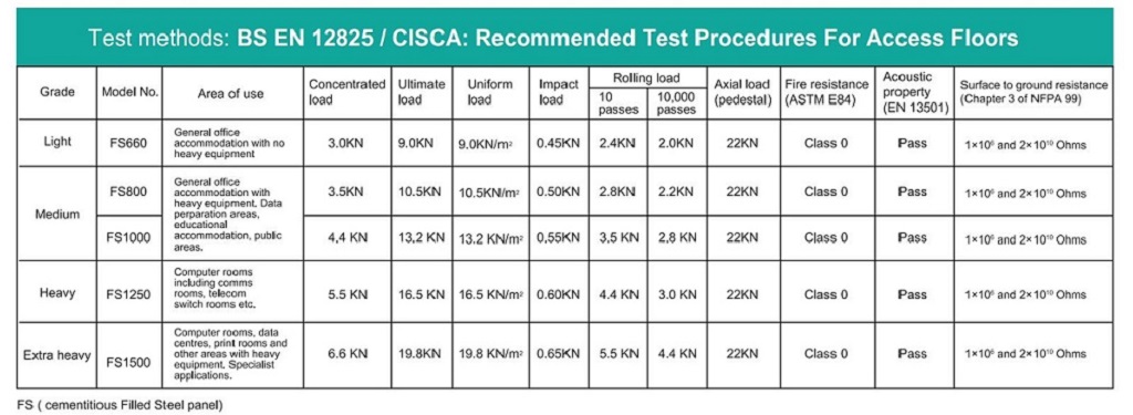 In accordance with these internationally accepted industry technical specifications of Access Floors, we conduct rigorous testing of each raised floor panel before leaving the factory to ensure compliance with applicable industry manufacturing standards and provide true test reports to our customers.
